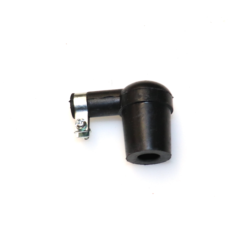 Non resistor, 90 degree black rubber plug cap. Accepts standard fitting (the larger, non threaded type).