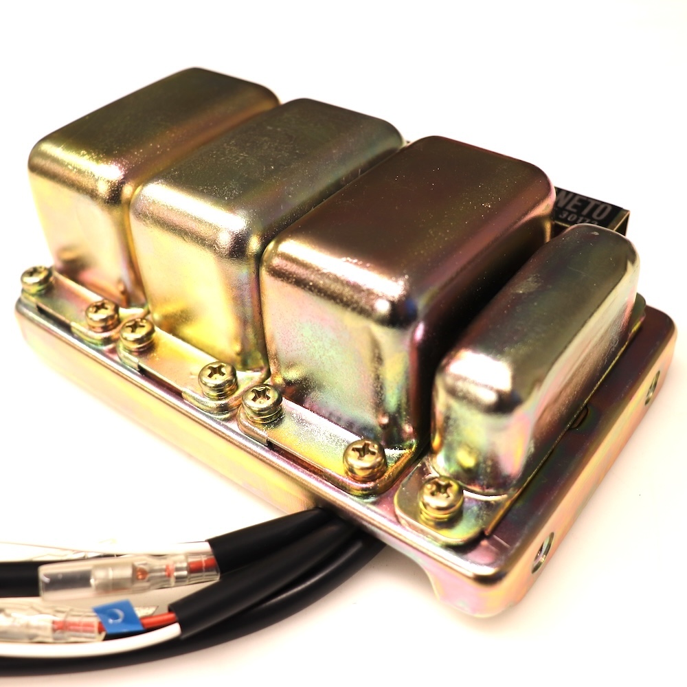 Lot 00303 – a restored Kawasaki H2A triple ignition unit, that is ready to go on an exchange basis. This is a genuine OEM part, fully rebuilt in-house with brand-new modern electronics sealed inside its original case.